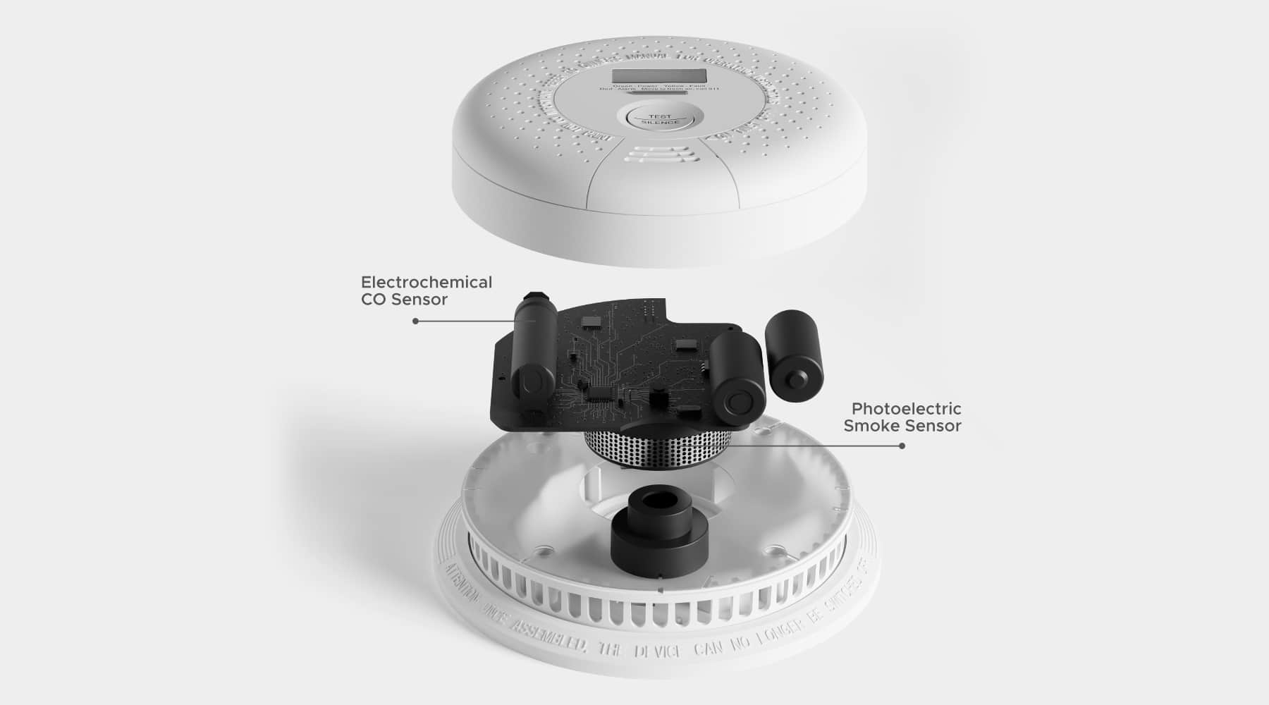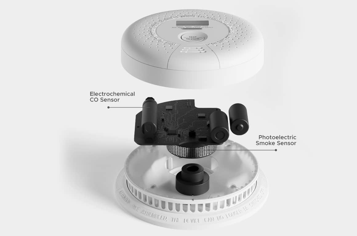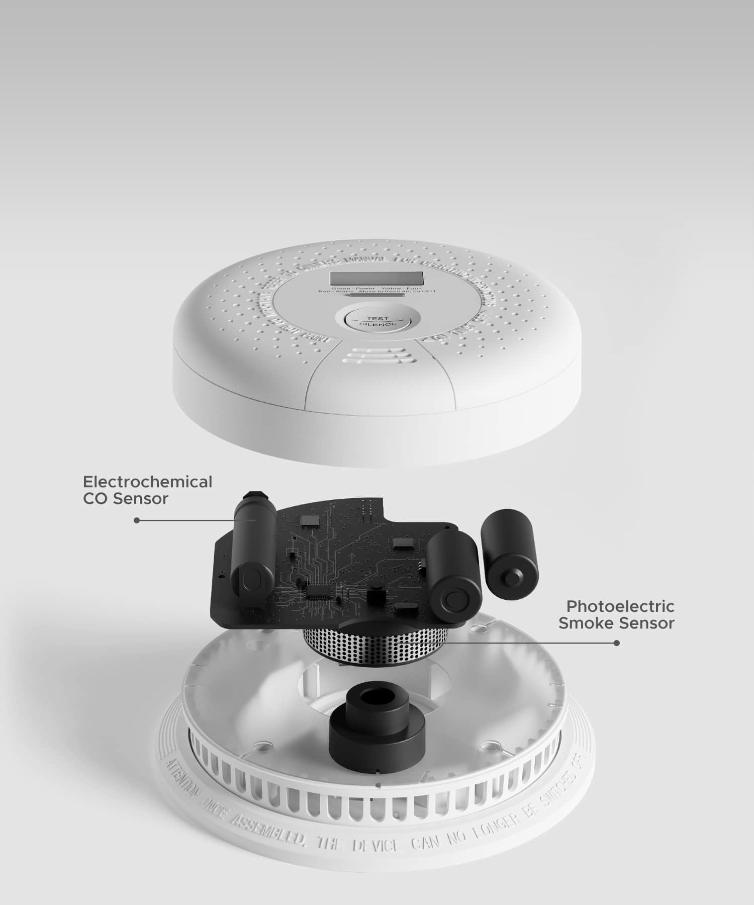 - This combination alarm combines photoelectric and electrochemical technologies to detect both smoke from smoldering fires and dangerous CO concentrations, delivering 2-in-1 protection.
