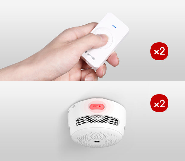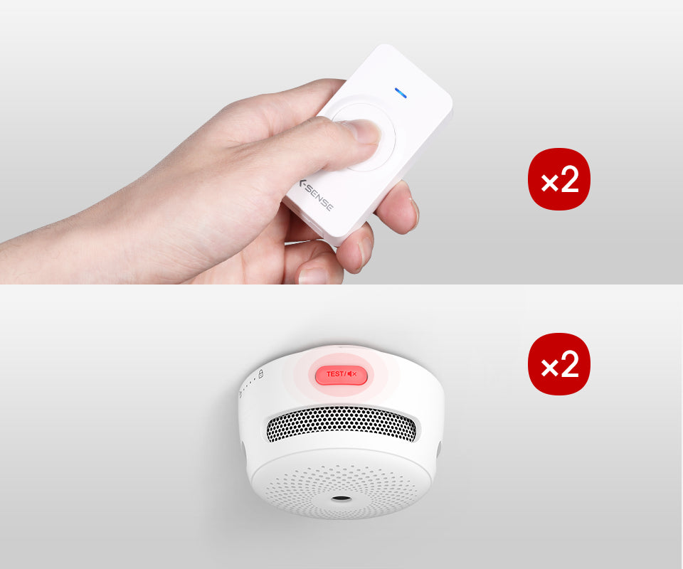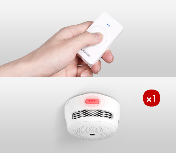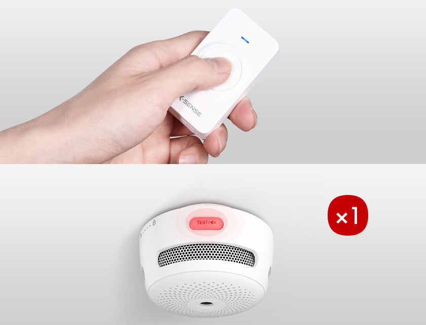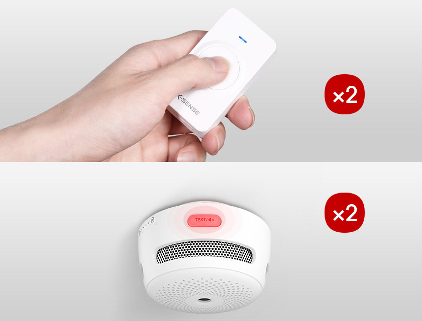 - Press the test/silence button on the remote controller twice. The LED will flash rapidly, indicating that it is searching for a device to connect to. After successful linking, the alarm will beep once and automatically exit the pairing mode.