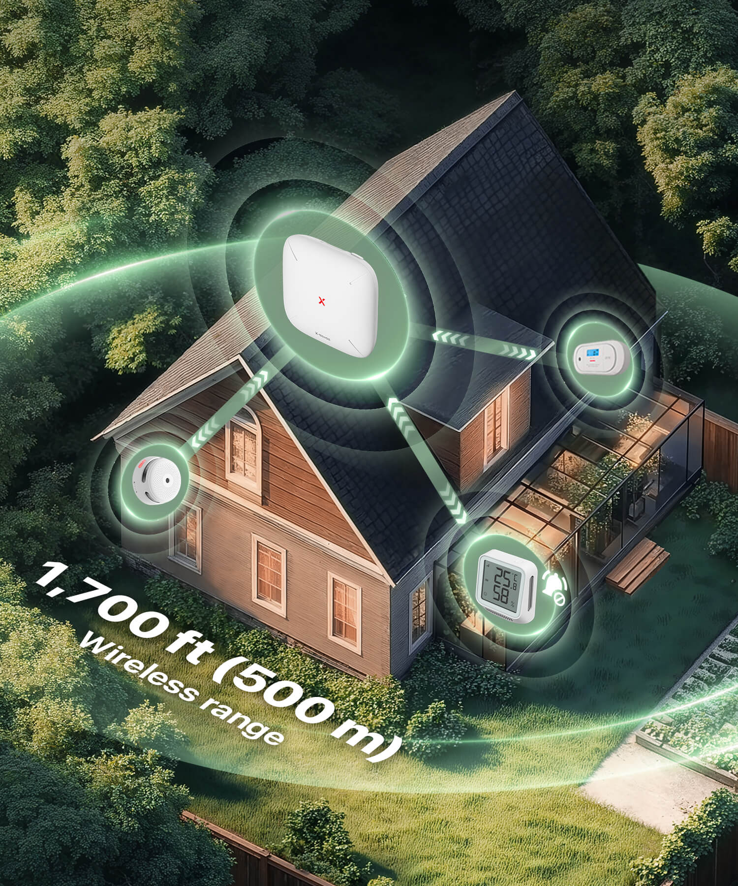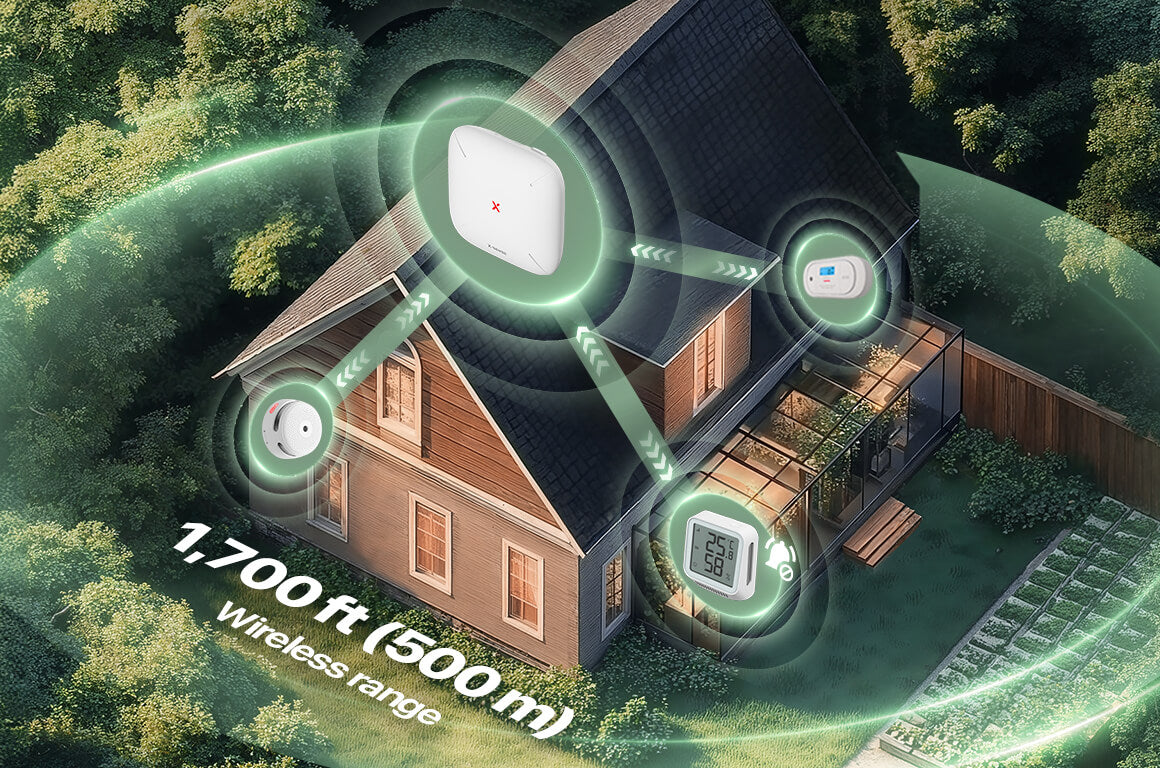 - Supports up to 50 devices (10 thermo-hygrometers) with a 1700ft (500m) range. Manage all your devices, including X-Sense smoke alarms and CO alarms, conveniently in one app.