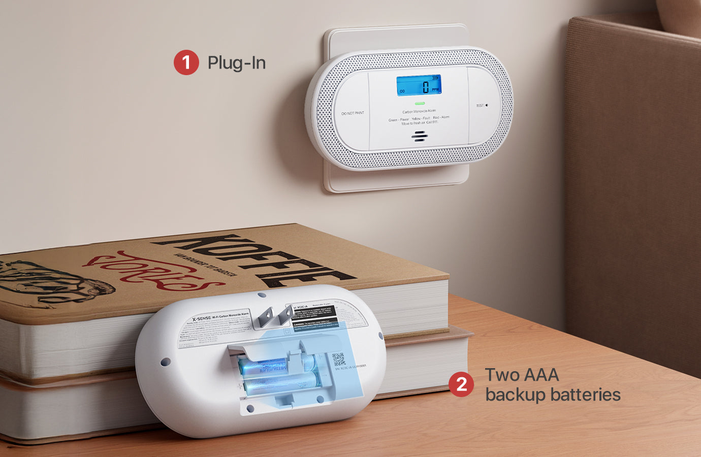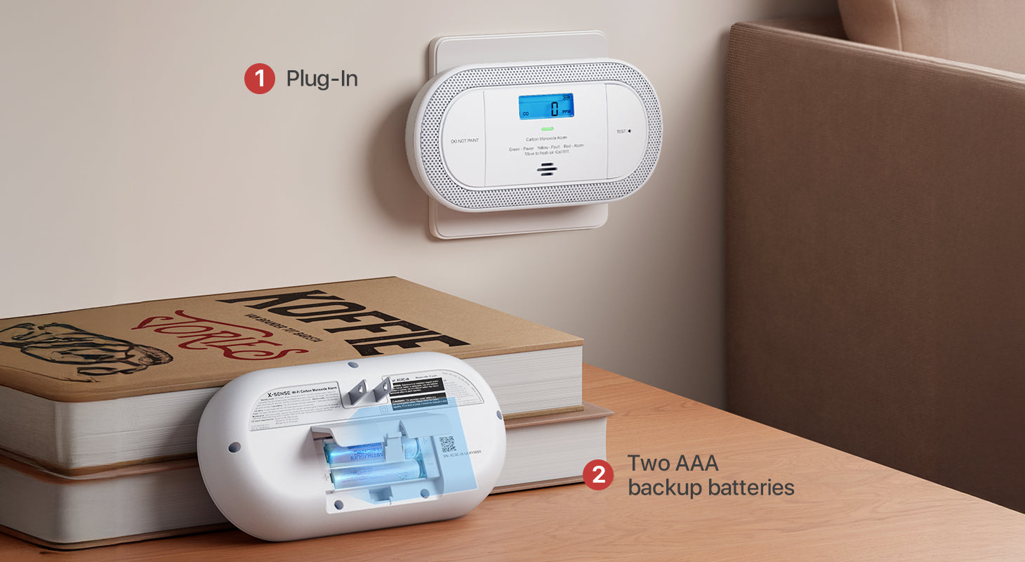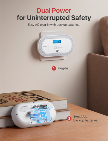 - Enjoy the convenience of this CO detector that plugs in an outlet to utilize AC power, making home safety easier than ever; in the event of a power outage, the backup battery takes over, keeping you protected from this silent threat without interruption; this dual power source means 24/7 protection—and one less thing to think about.