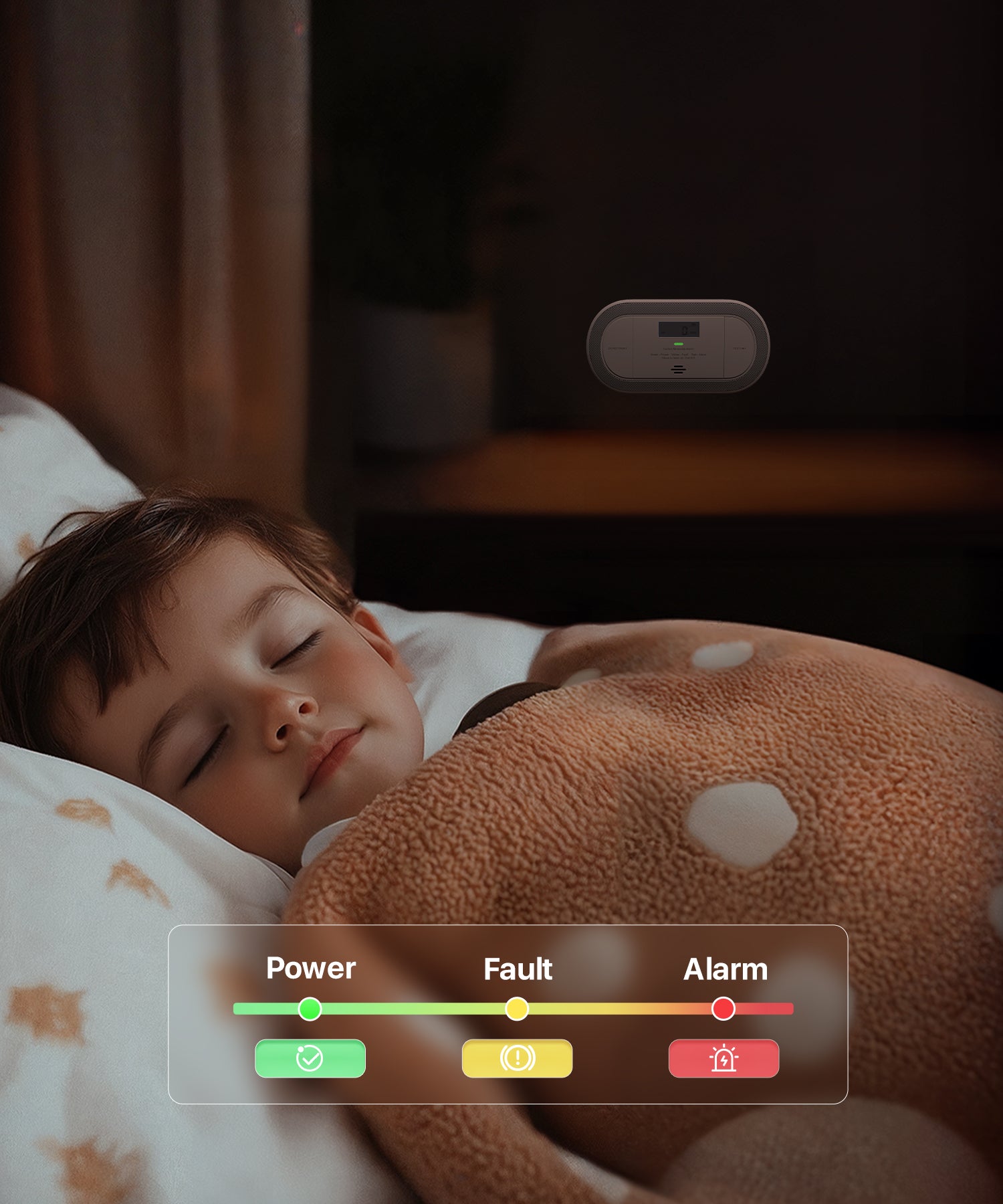 - Ideal for bedrooms, this CO detector’s green status light is soft and dim so it won’t disturb sleep; the steady green LED indicates a stable power supply, allowing you to quickly and easily check it is working.