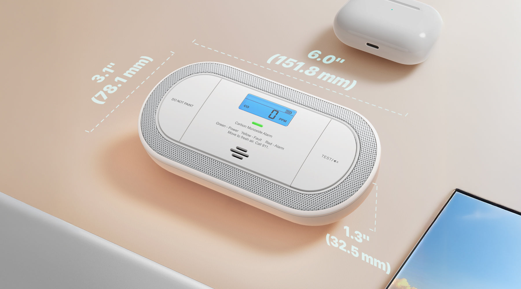 - This CO detector measures 6.0" x 3.1" x 1.3" (151.8 x 78.1 x 32.5 mm).
