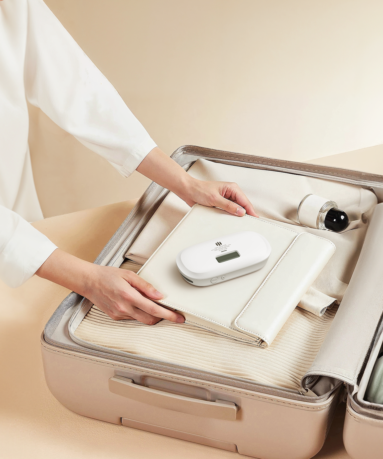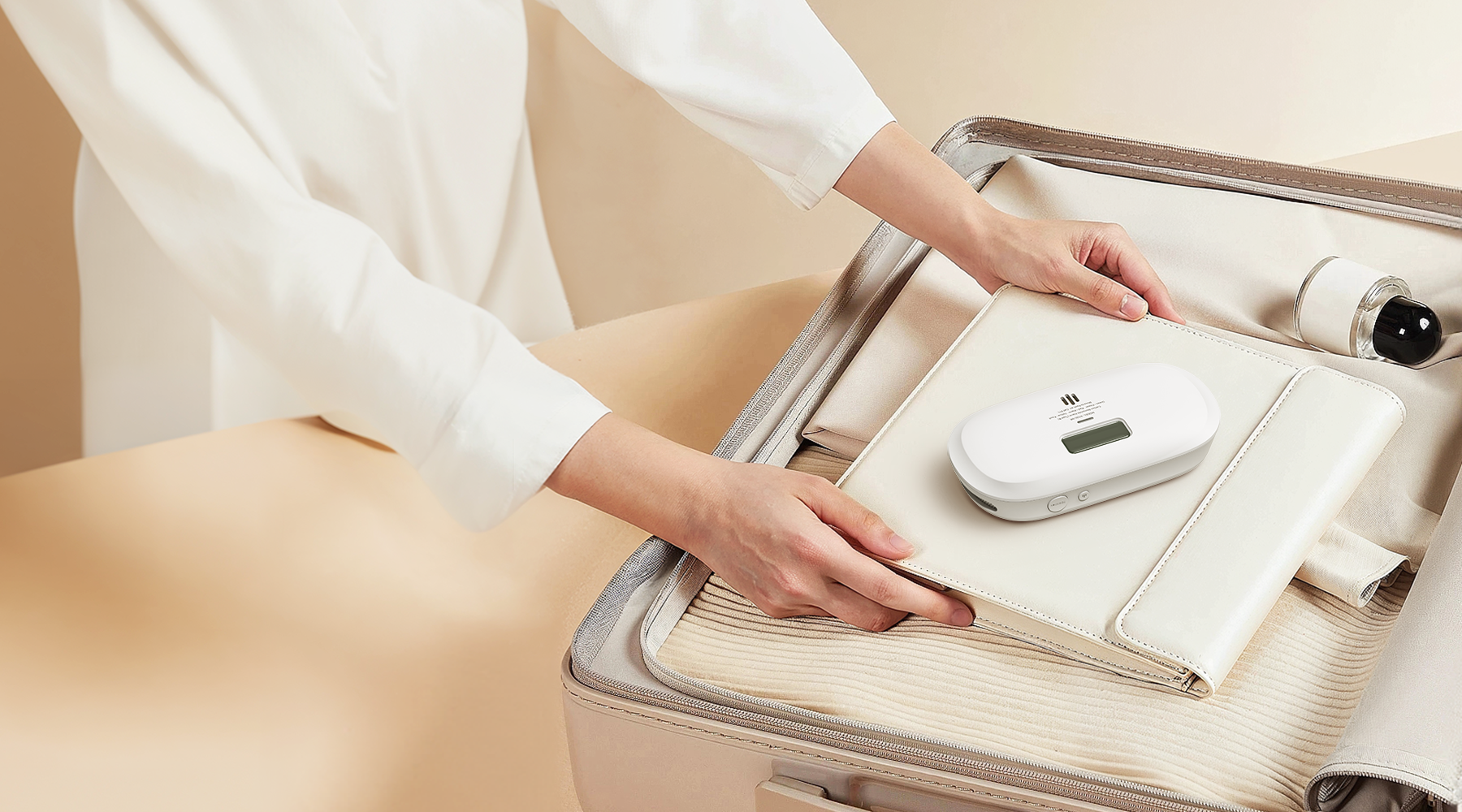 - Slip this compact CO detector into your bag or suitcase for extra peace of mind when you travel; measuring only 3.0 × 5.6 × 1.3 in (75 × 142 × 32 mm) and using AA batteries, this convenient device can be taken in carry-on or on trips abroad.