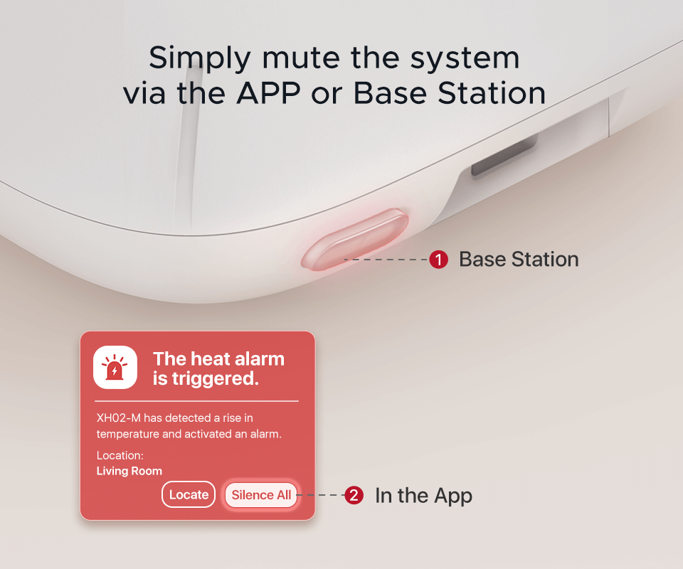 Quickly and easily mute unnecessary alarms via the app or directly on the base station itself. This feature is crucial for managing false alarms without disrupting your household.