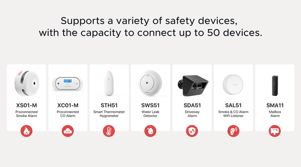 The SBS50 Base Station is compatible with a diverse array of X-Sense safety devices, including: