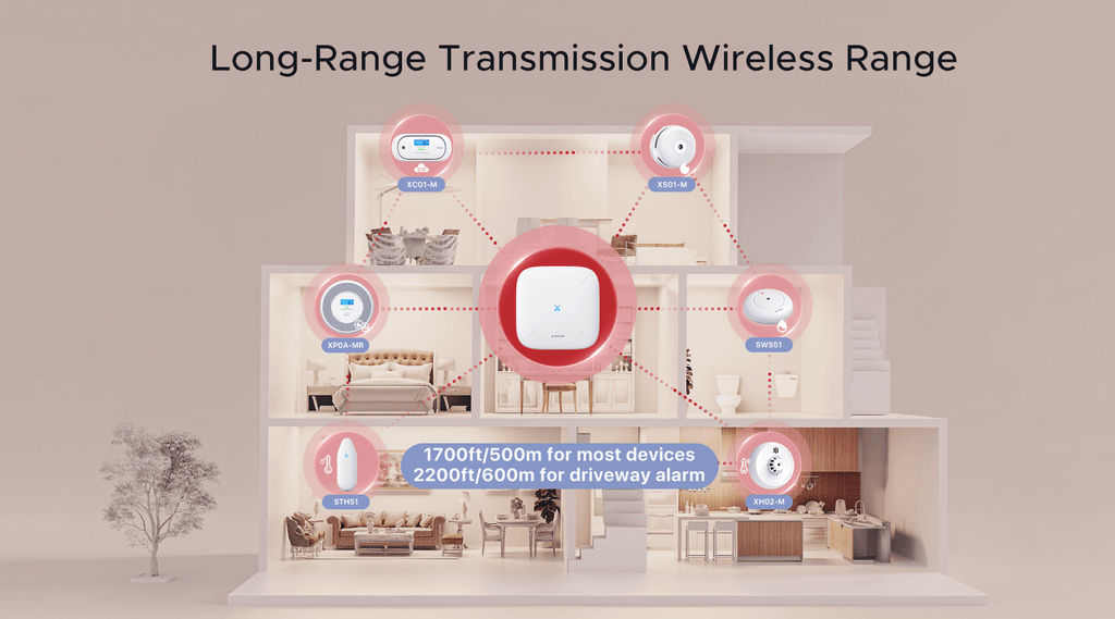 With a wireless range of 1700ft (500m) for most devices and up to 2200ft (600m) for the driveway alarm, the SBS50 Base Station guarantees reliable connectivity across your property, making it ideal for both small and large homes.