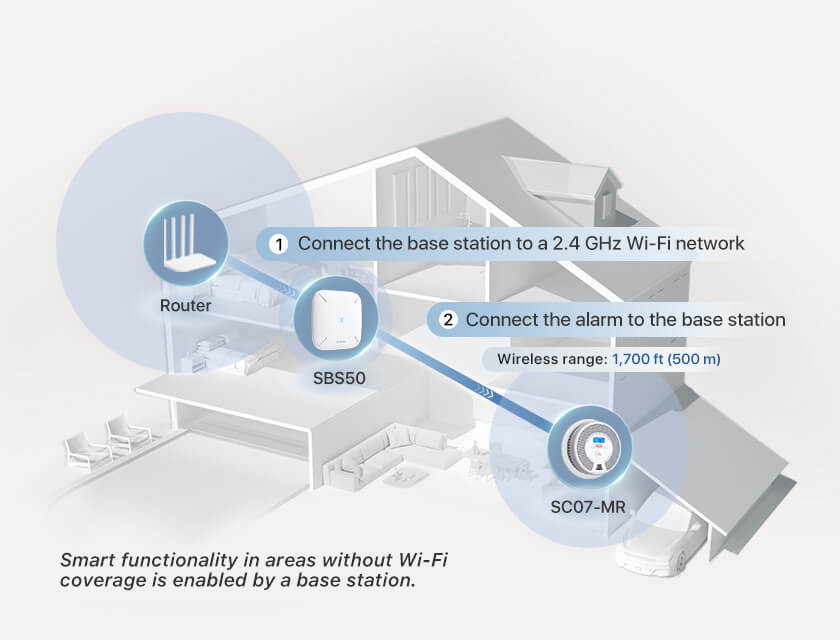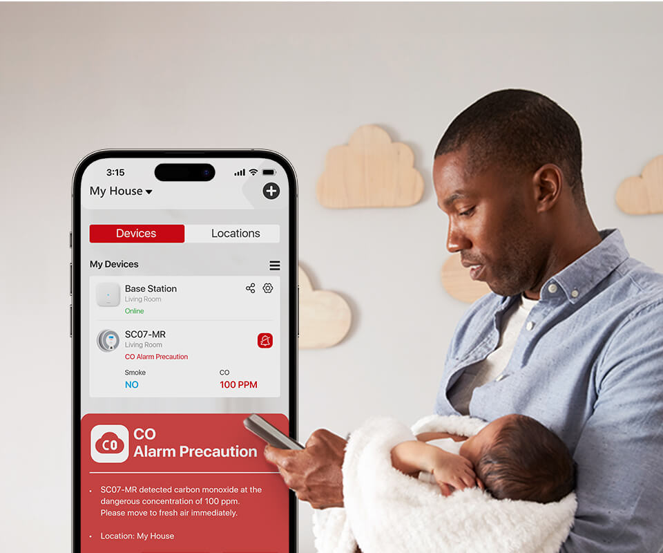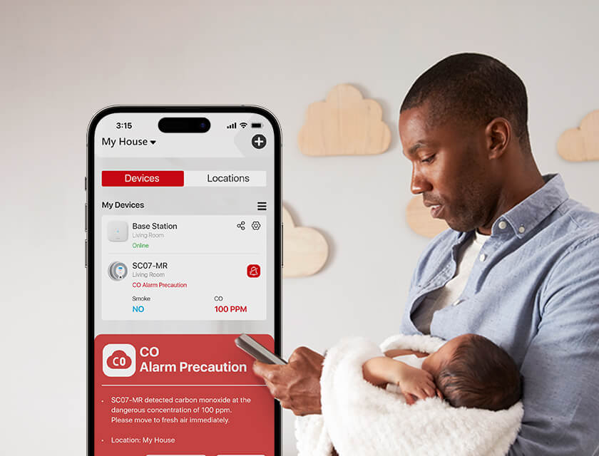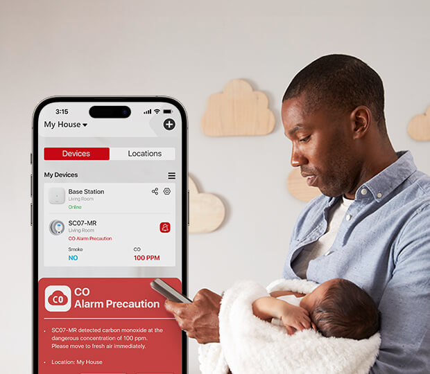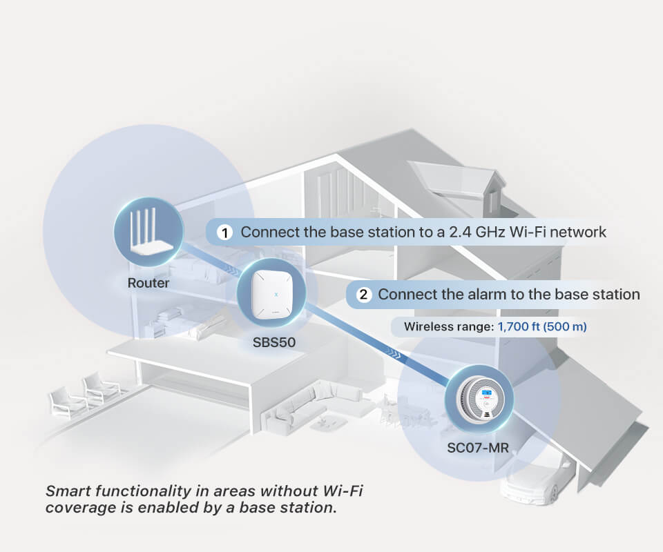 - All connected SC07-MR alarms sound simultaneously when one detects a threat, ensuring the alarm is heard throughout your home, and everyone can react quickly to potential dangers.