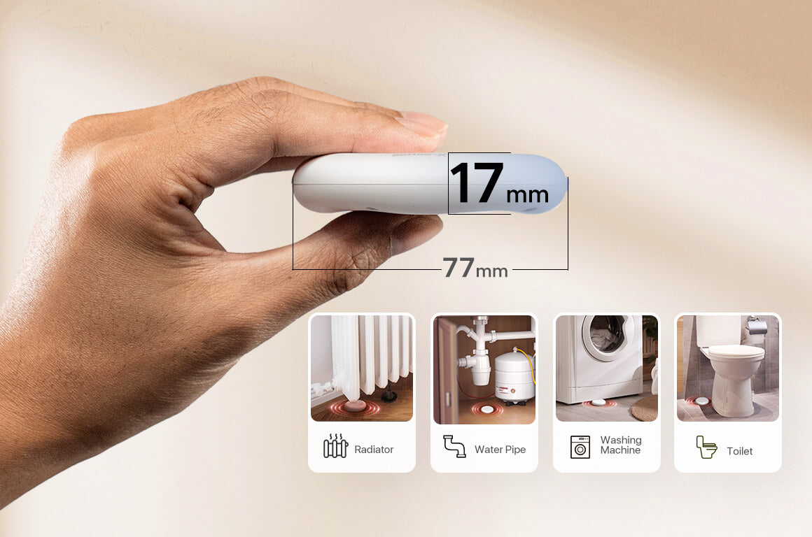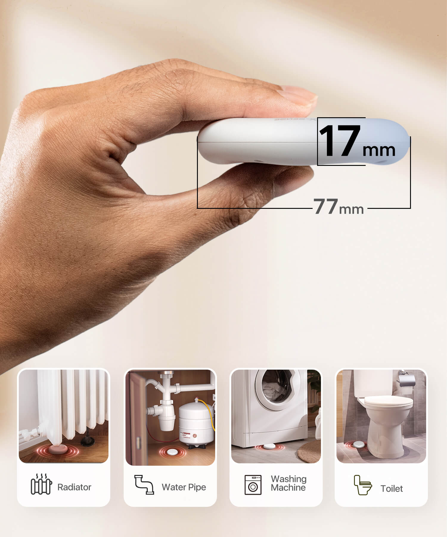 - With a slim profile of only 0.7 inches, this sensor fits easily in tight spaces—perfect for places you don’t regularly check.
