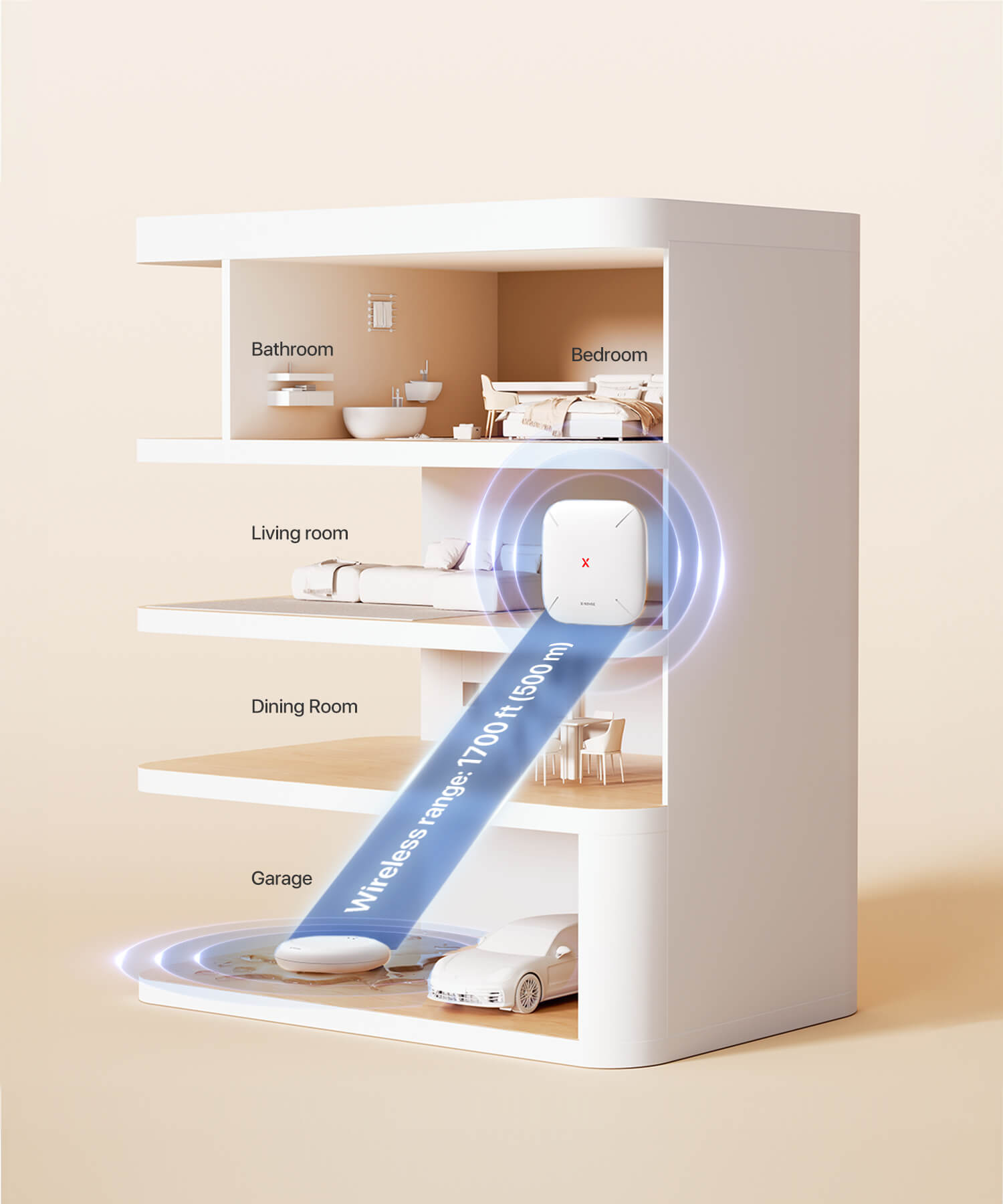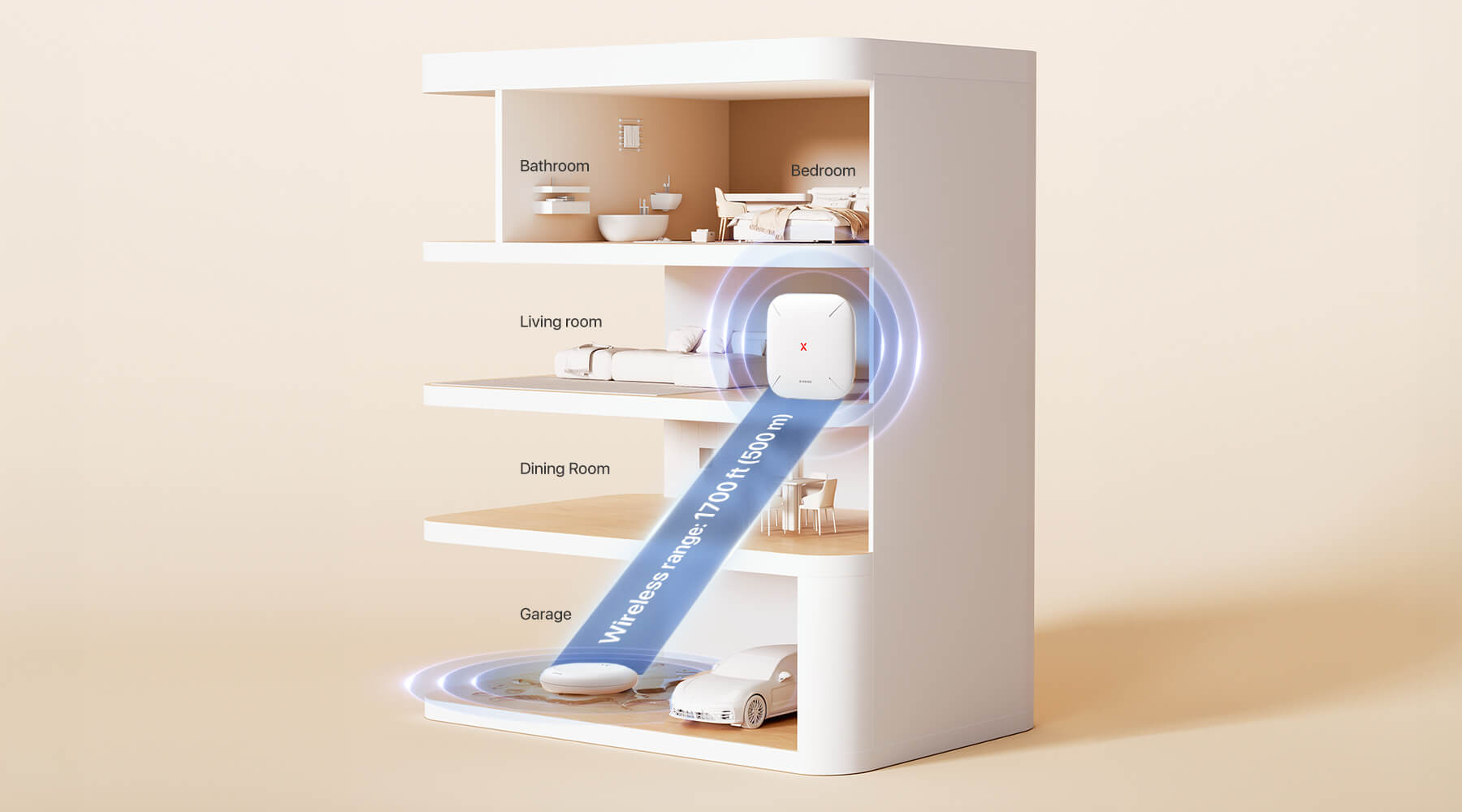 - A robust wireless range of up to 1,700 ft in open areas allows placement in remote locations while maintaining reliable connectivity.