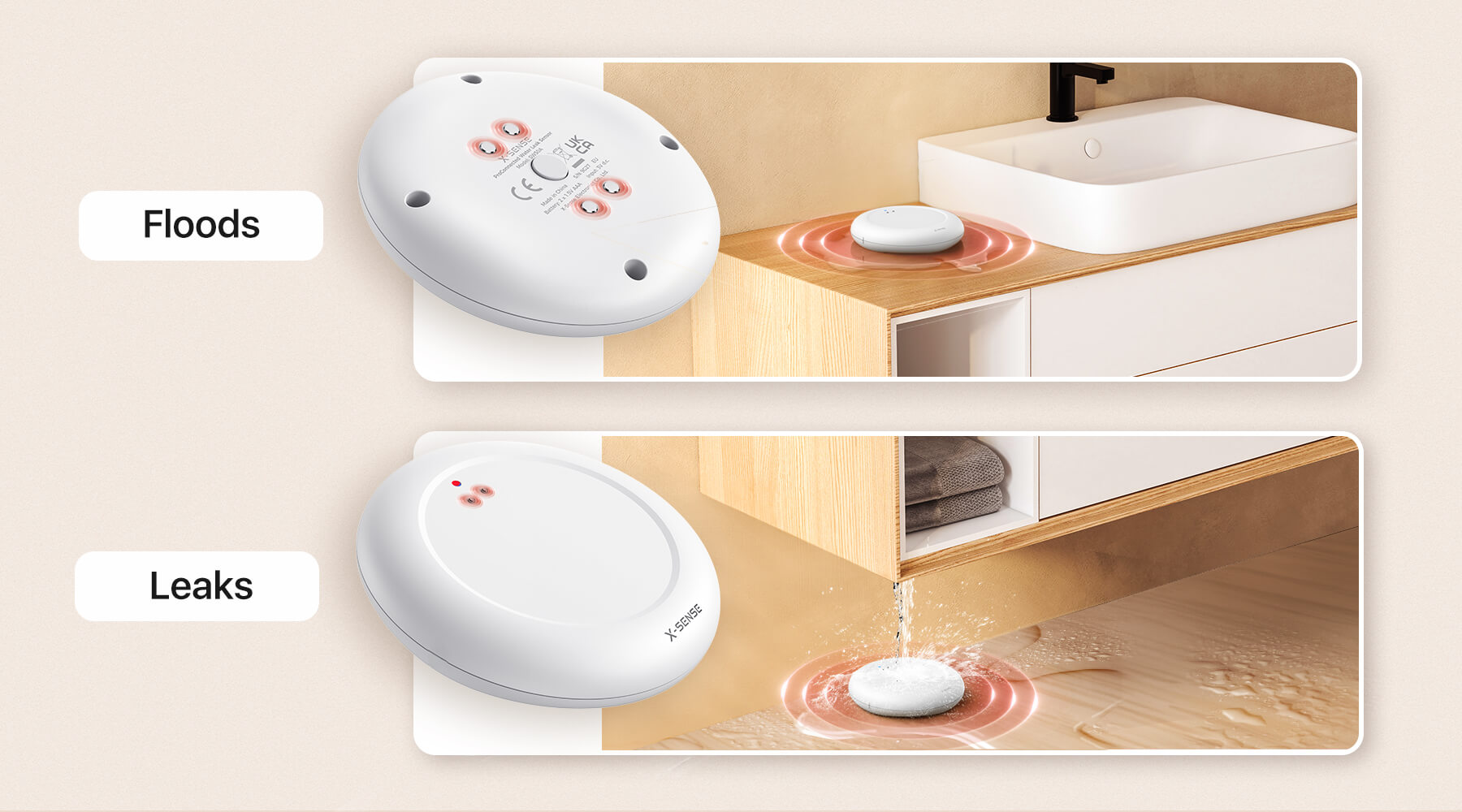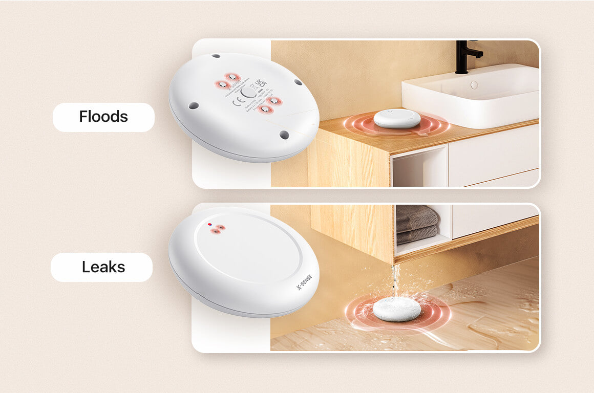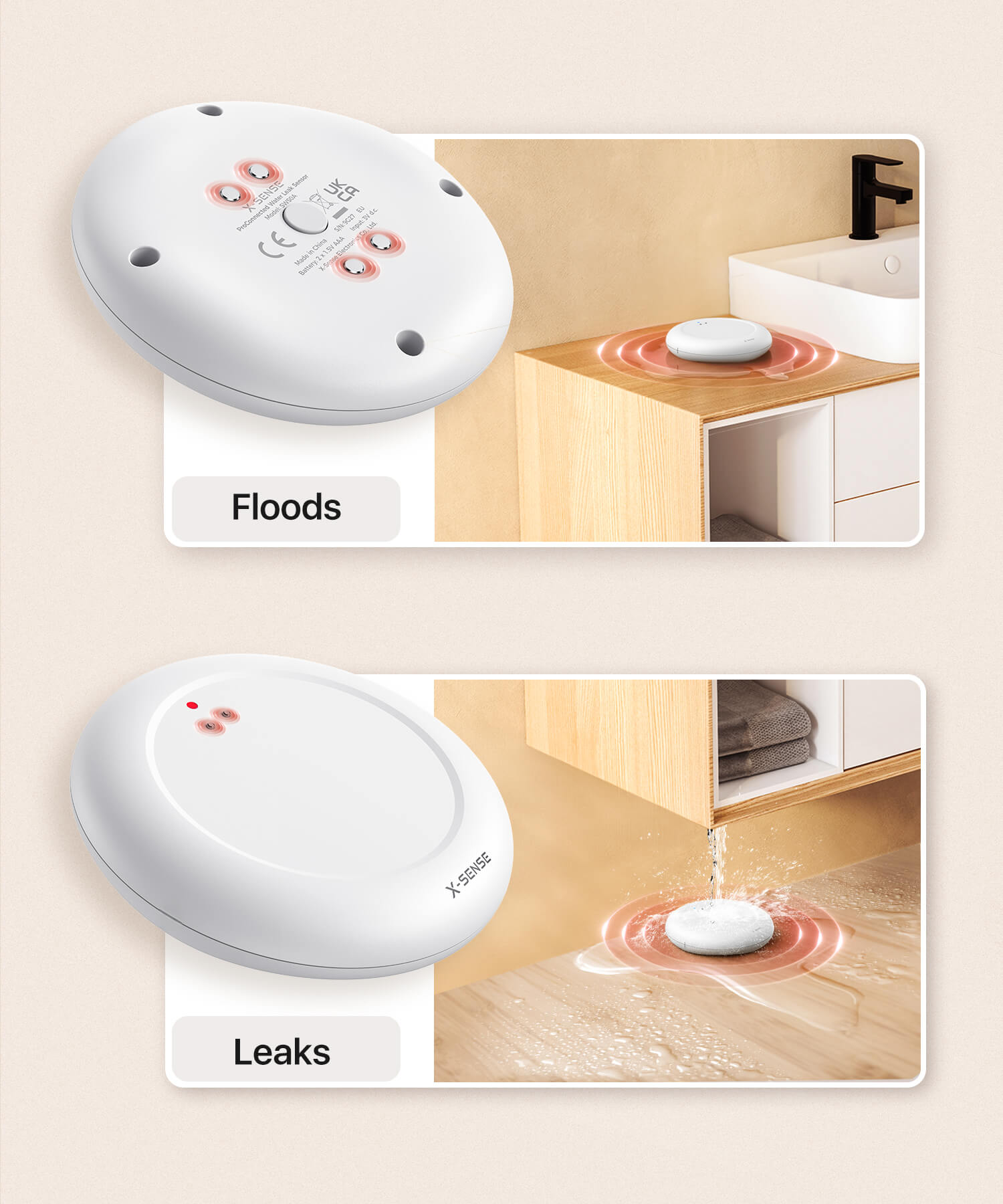 - Equipped with dual sensors (two on the top and four on the bottom), our device detects water as shallow as 0.4 mm, ensuring prompt alerts for both pooling water and dripping leaks.