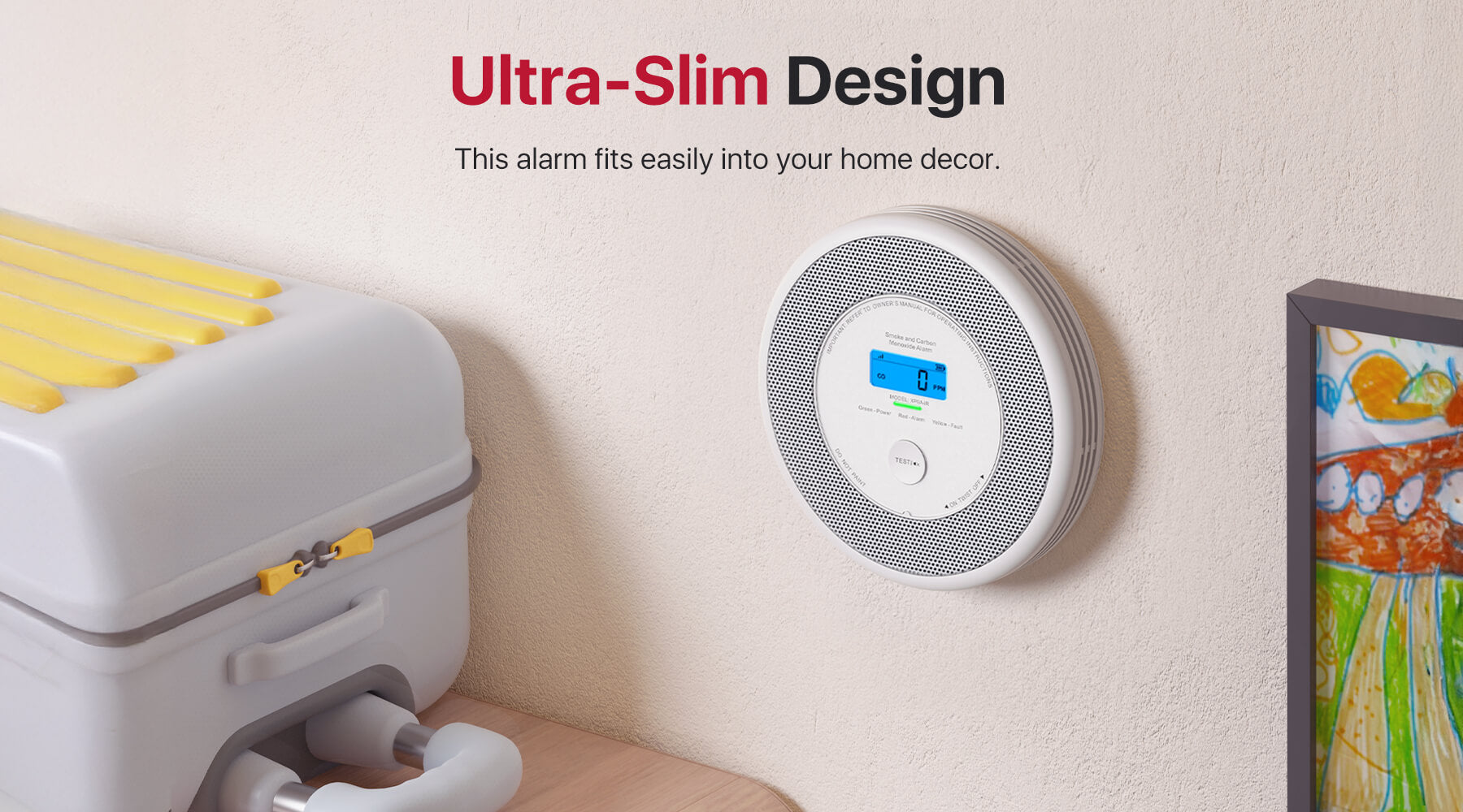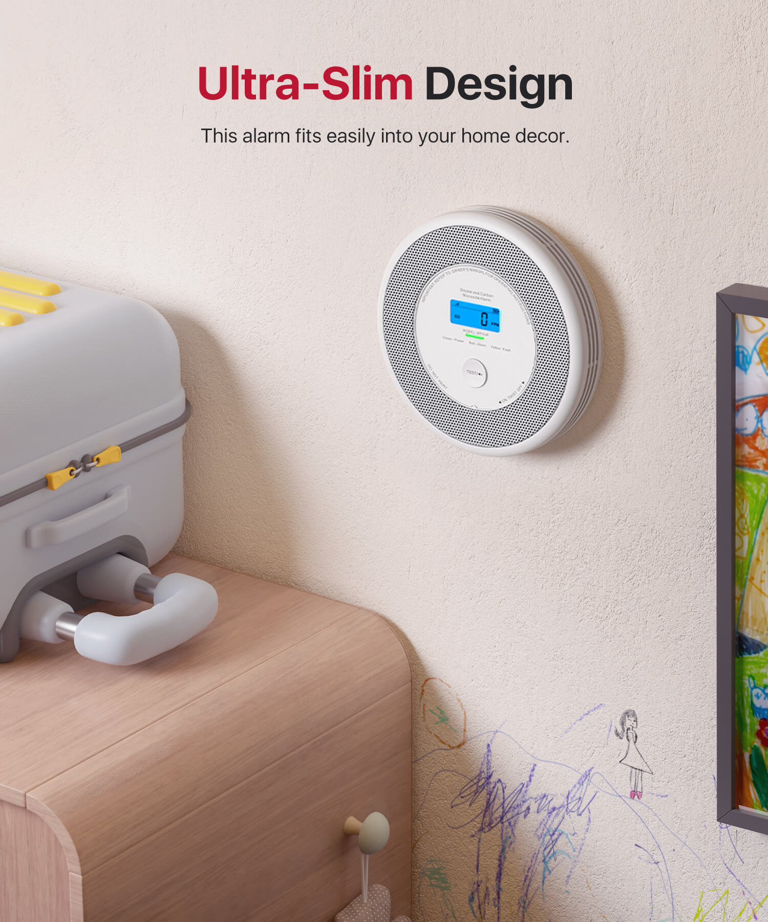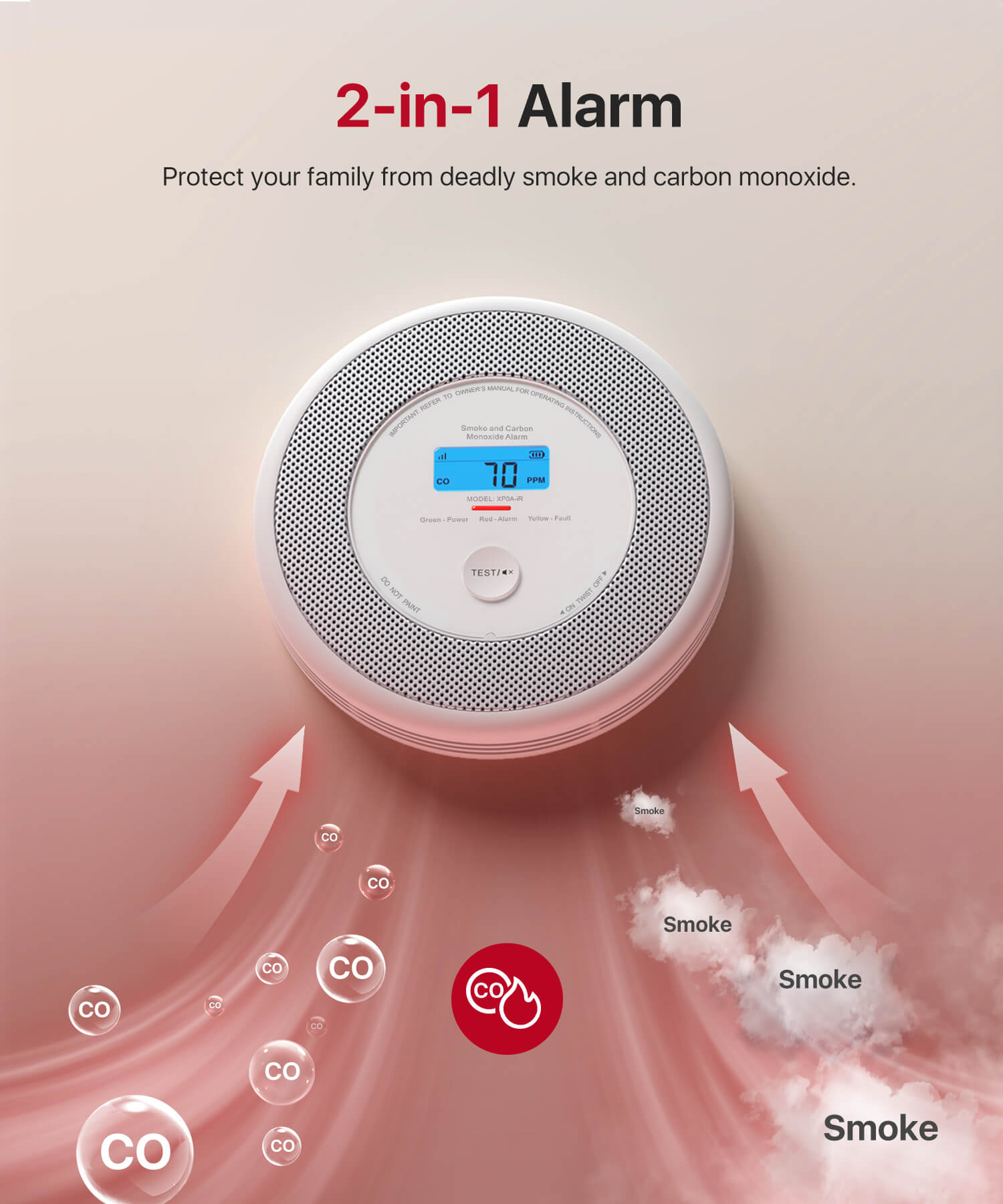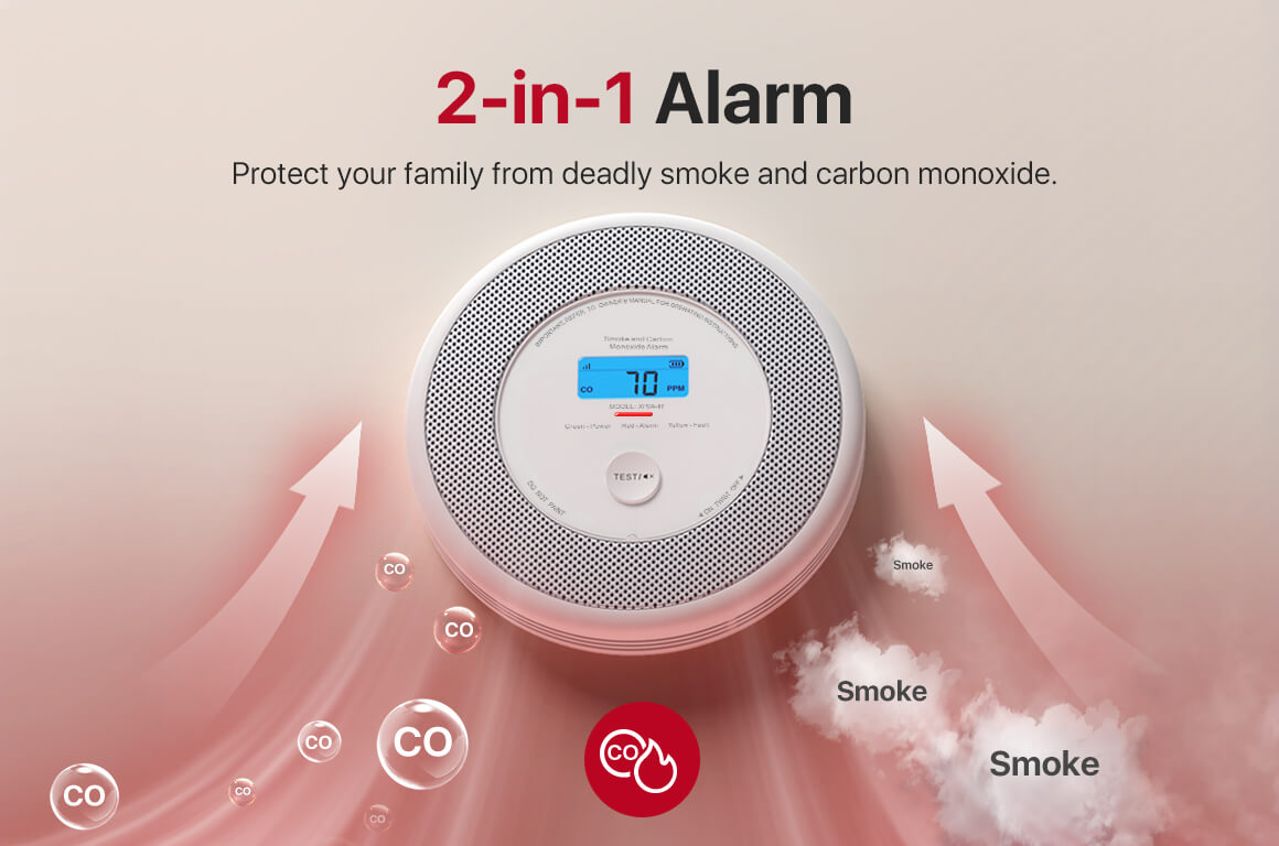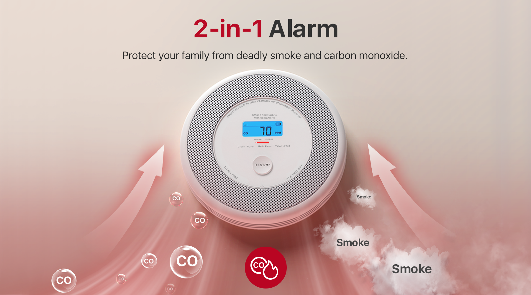 - Utilizes both photoelectric and electrochemical sensors to accurately detect raised levels of smoke and CO, providing reliable protection from these dangers.