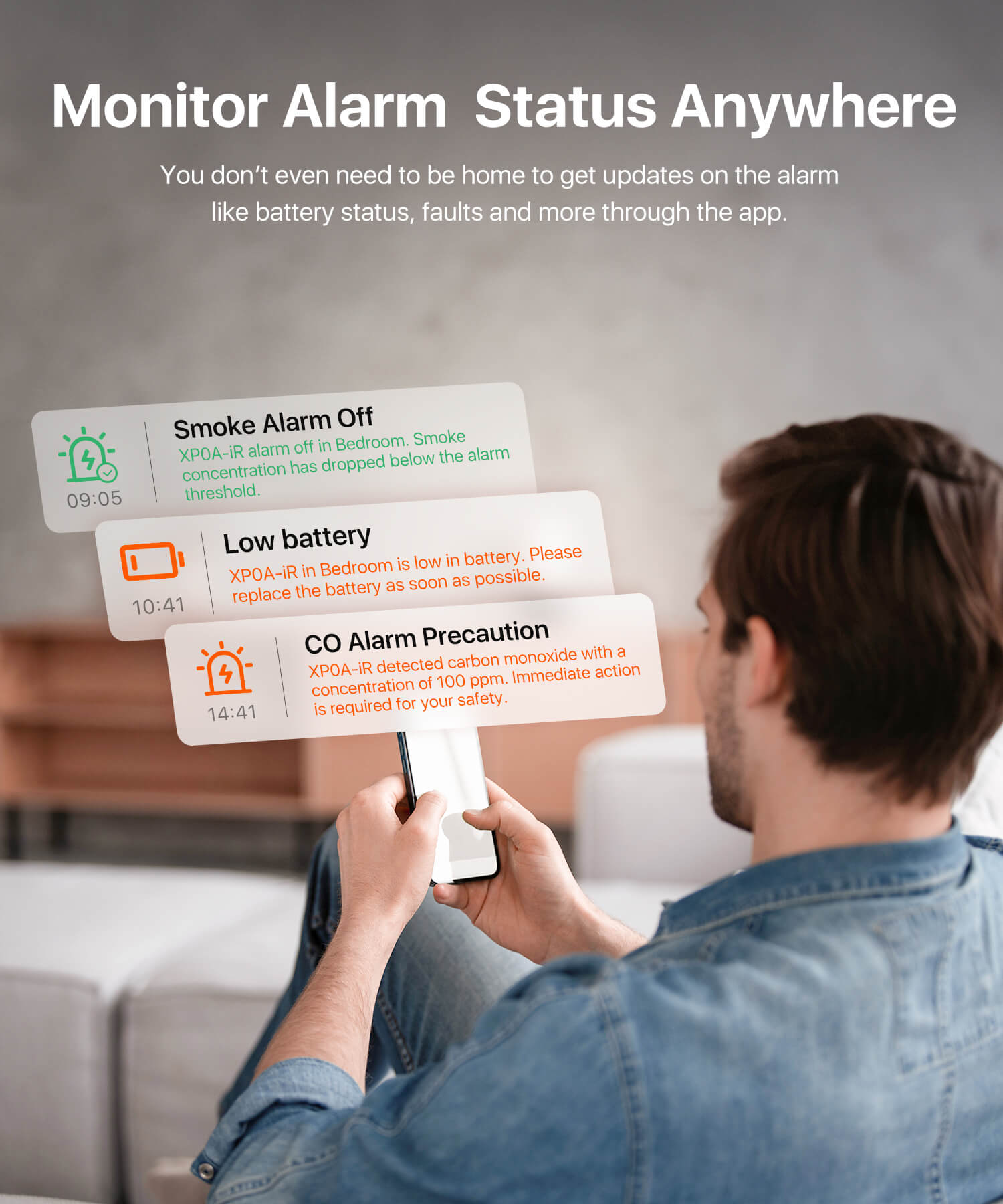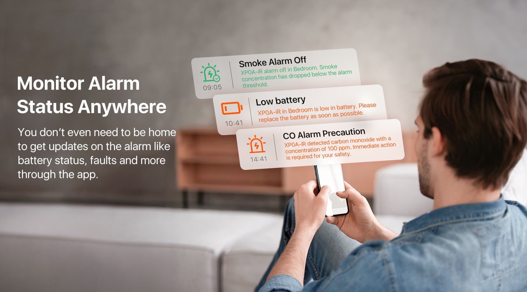 - Stay connected no matter where you are. The X-Sense app notifies you immediately of any smoke or CO detection, as well as when it's time to replace the battery. (XP0A-iR doesn't need the SBS50 Base Station, unlike the XP0A-MR and SC07-MR models)