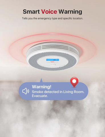 - Features a voice alert system that announces the type and location of detected threats, such as "Warning! Smoke detected in Living Room. Evacuate." This is particularly effective for ensuring all occupants understand and react quickly to the alert.